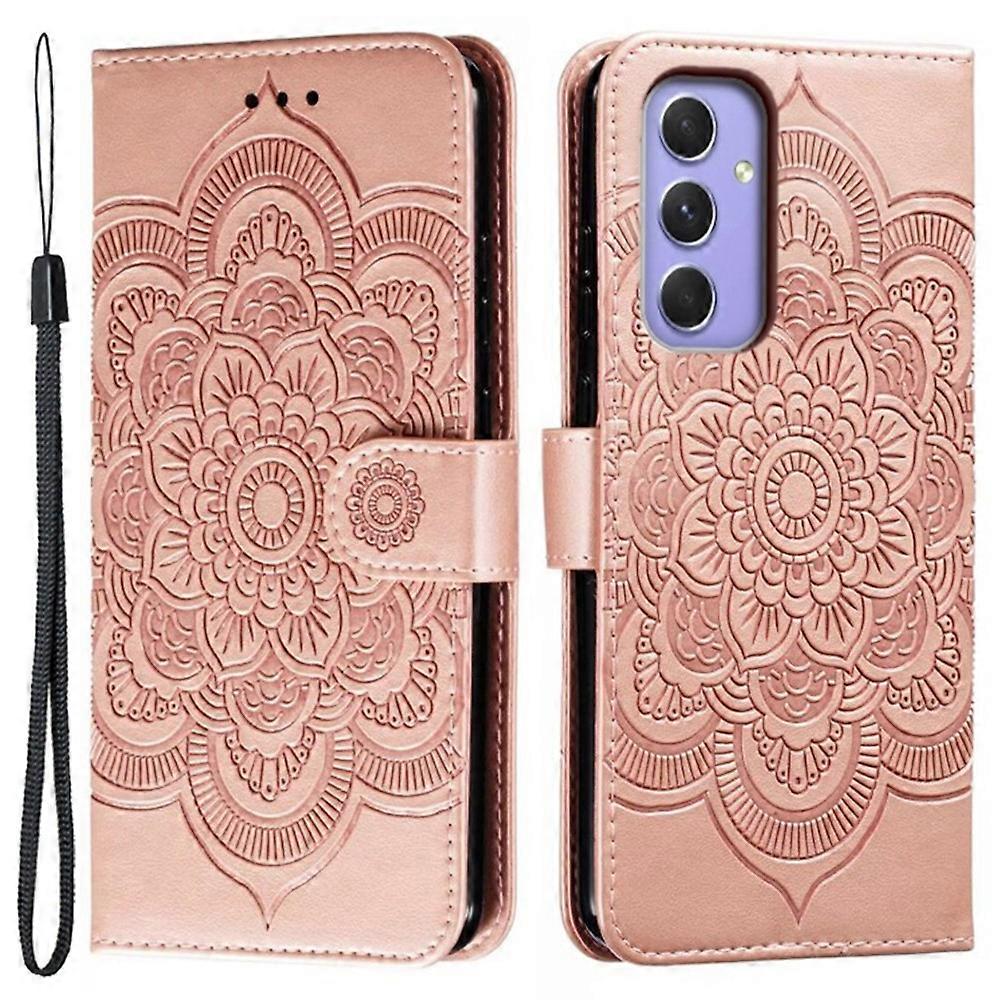 For Samsung Galaxy A57 Case PU Leather Mandala Imprinted Design Wallet Phone Cover with Wrist Strap