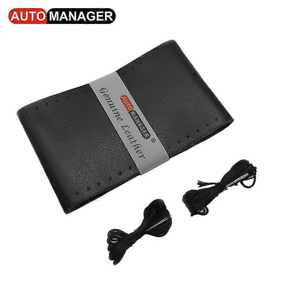 Genuine Cowhide Leather Braid Steering Wheel Cover 15inch 38cm