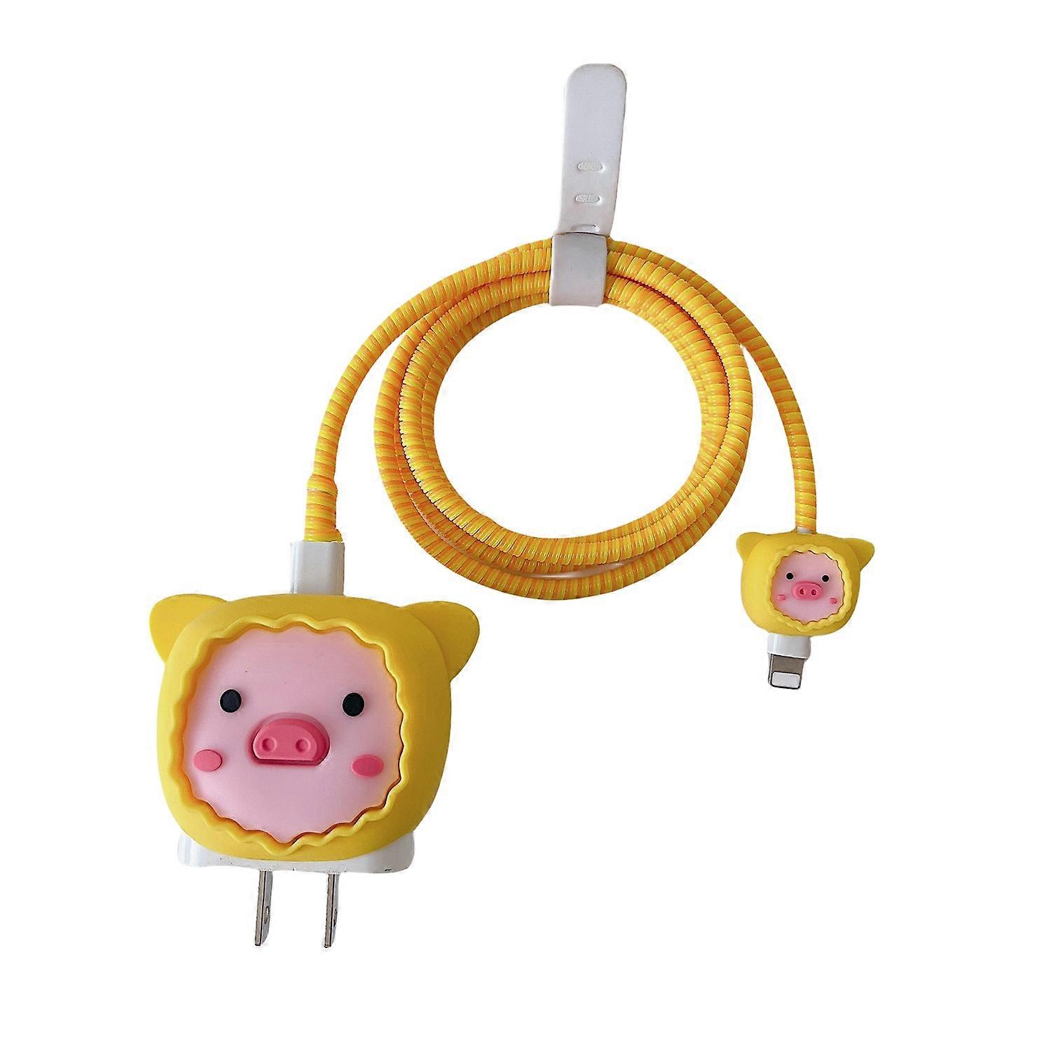 Cartoon Style Protective Case for iPhone 18W/20W Charger Block Cover Set with Charging Cable Case