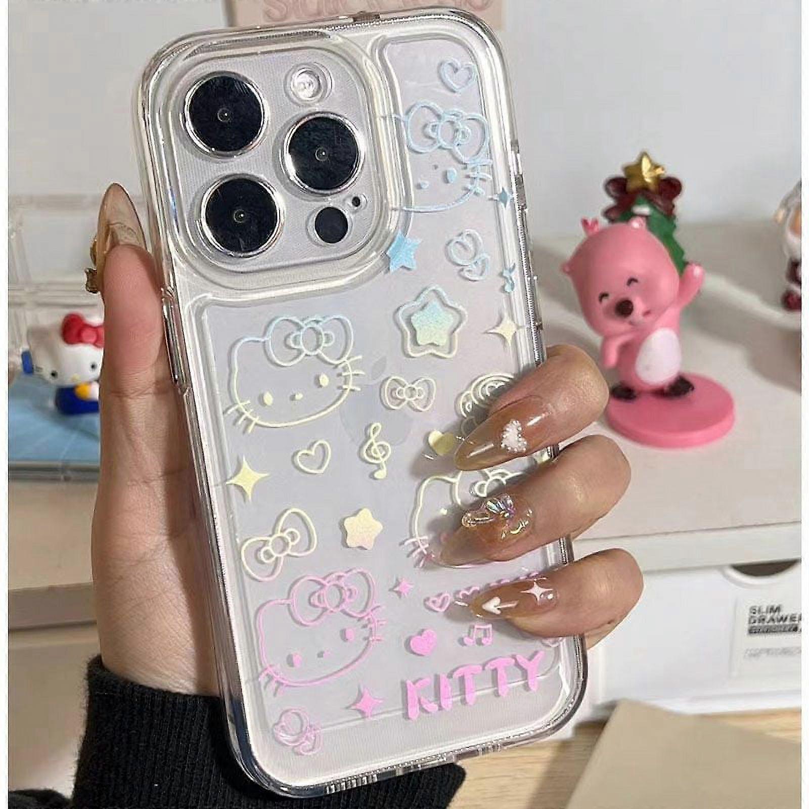Sanrio Hello Kitty Bow Lovely Phone Case For compatible with iPhone 15 14 13 Pro Max 11 12 13 Pro X XR 7 8 Plus Transparent Soft Cute Girl Y2K