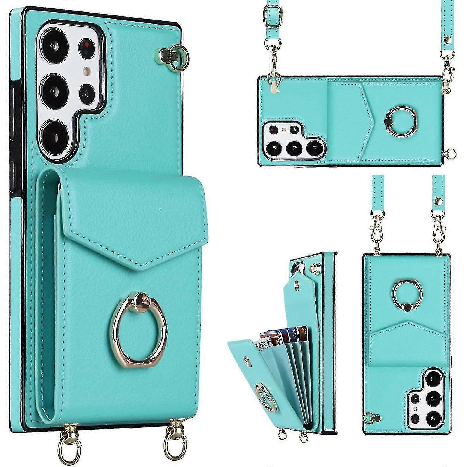 2025 For Samsung Galaxy S24 Minimalist Wallet Case With Ring Kickstand And Shoulder Strap, Shockproof Stylish Protective Cover For Samsung Galaxy S24