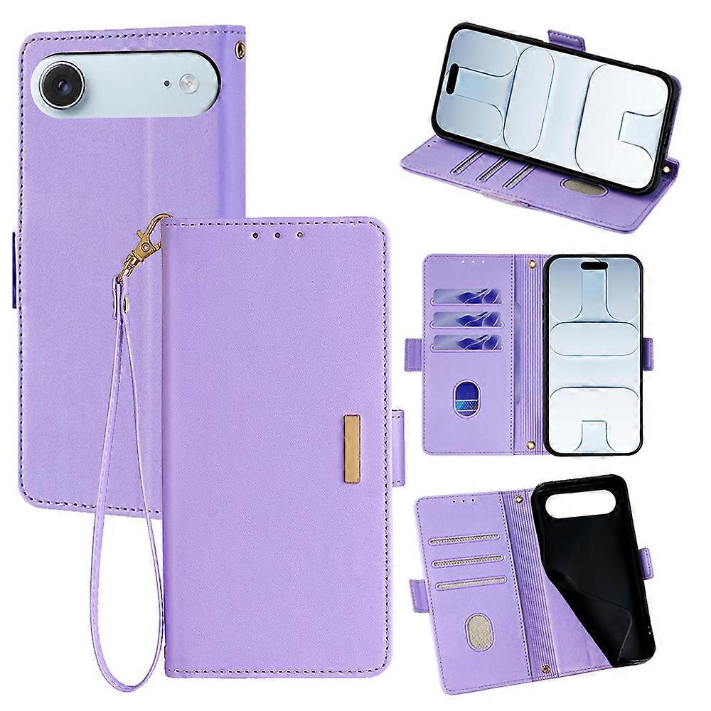 TKdaddy For iPhone Air Case RFID Blocking Wallet PU Leather Phone Cover with Wrist Strap - Purple