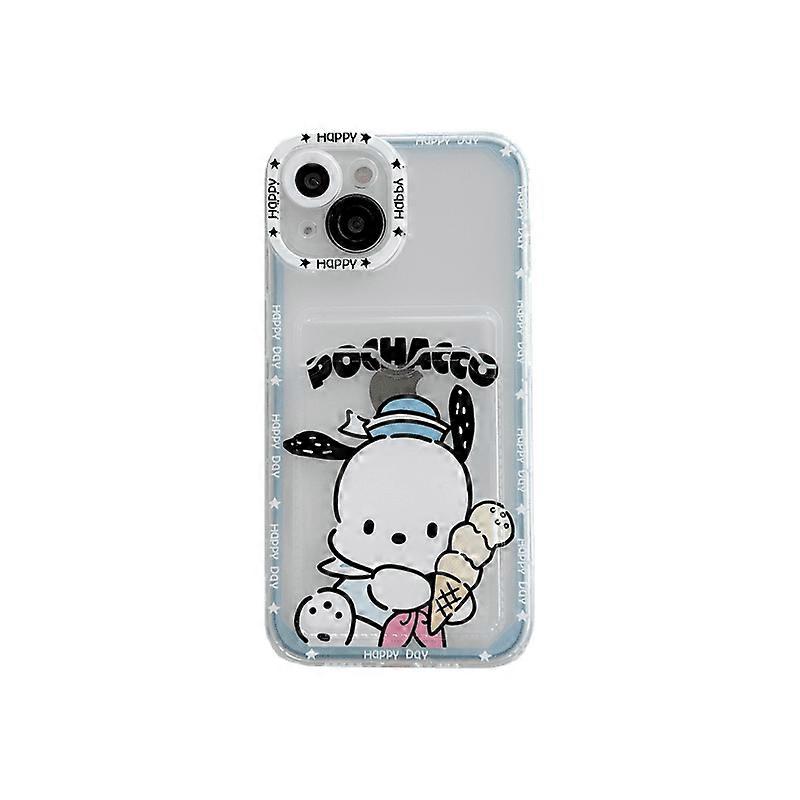 Transparent Pochacco Pattern Case For compatible with iPhone 7 8 Plus 13 12 11 14 Pro Max X XR XS Sanrio Soft TPU Card Slot Pocket Holder Cover