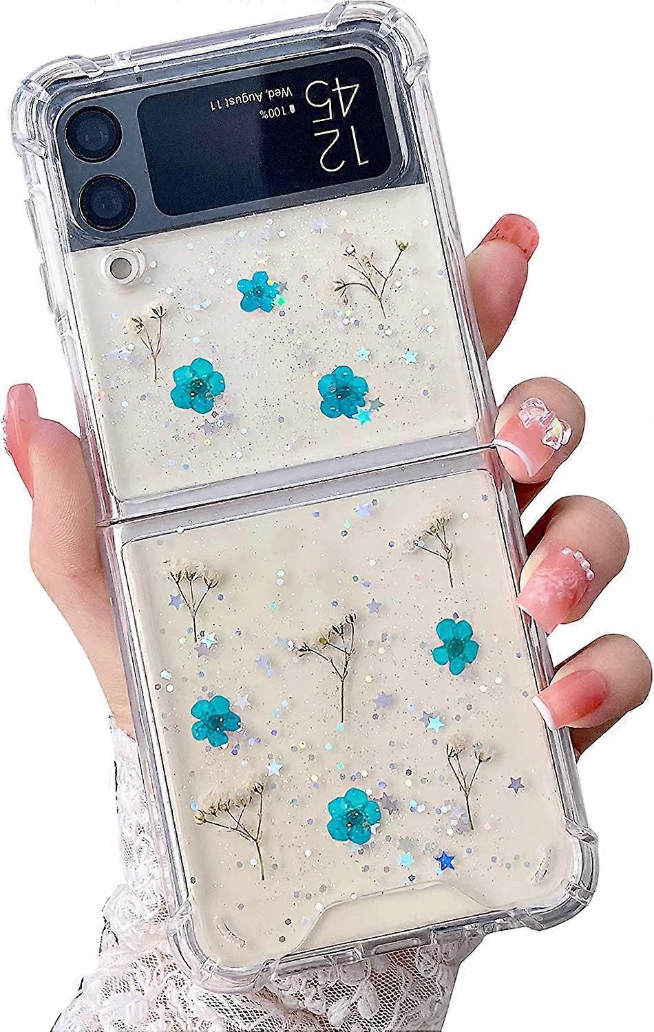 Galaxy Z Flip 3 Clear Case, Soft Clear Flexible Rubber Planet Space Stars Sparkle Case Girls Women Glitter Shockproof Protective Case for Samsung Gala