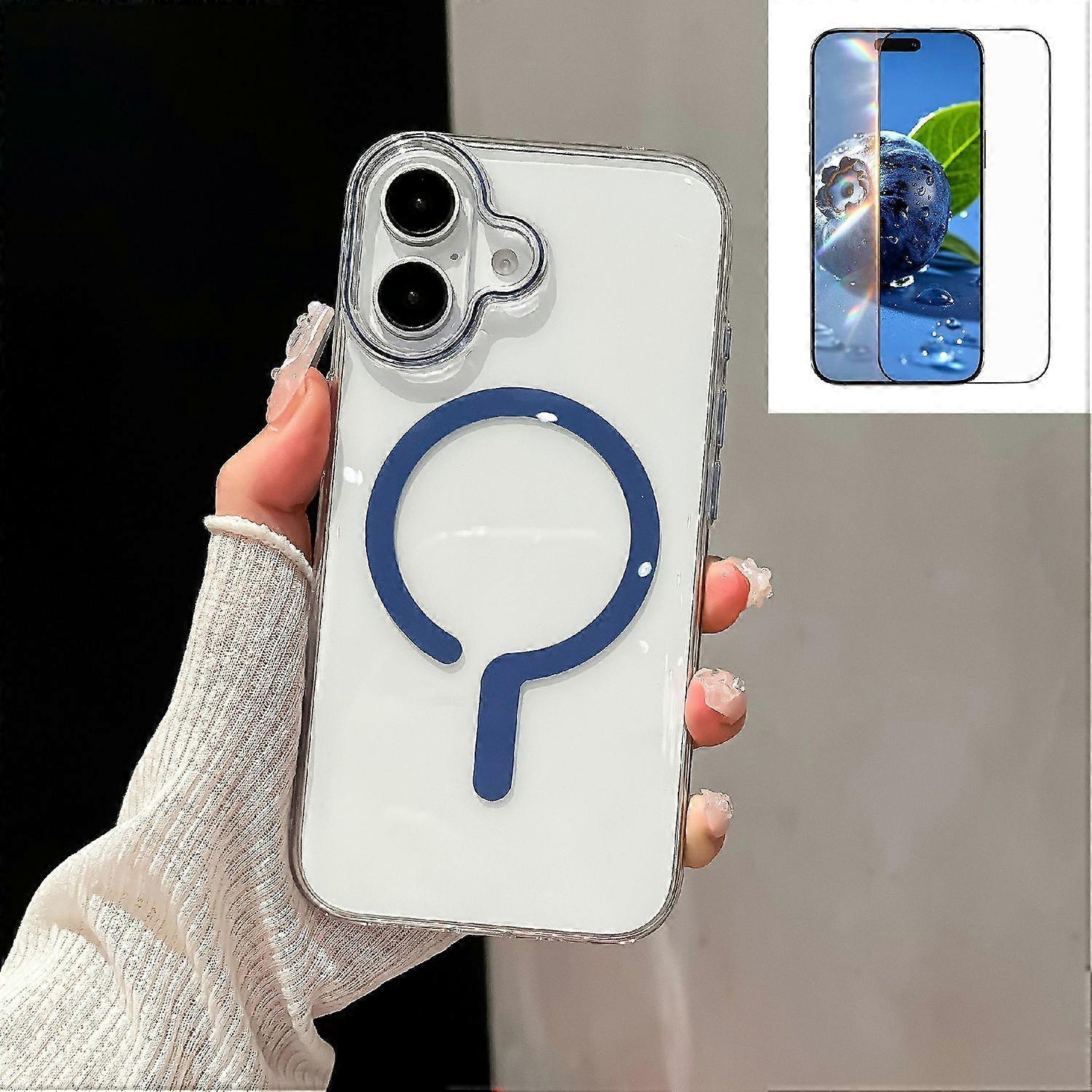For iPhone 16 Crystal Clear Case Compatible with MagSafe Hard PC Phone Cover with Tempered Glass Fil