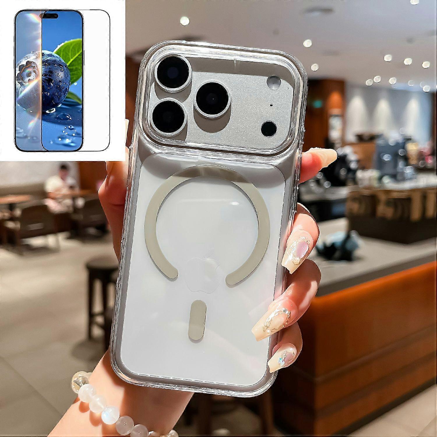 For iPhone 17 Pro Crystal Clear Case Compatible with MagSafe Hard PC Phone Cover with Tempered Glass