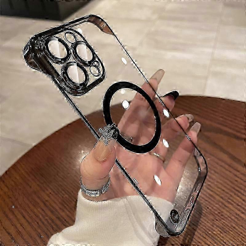 Transparent Ultra Thin Frameless Case for iPhone 16 15 14 13 12 11 Pro Max Magnetic Wireless Charging Phone Cover Cool Black w