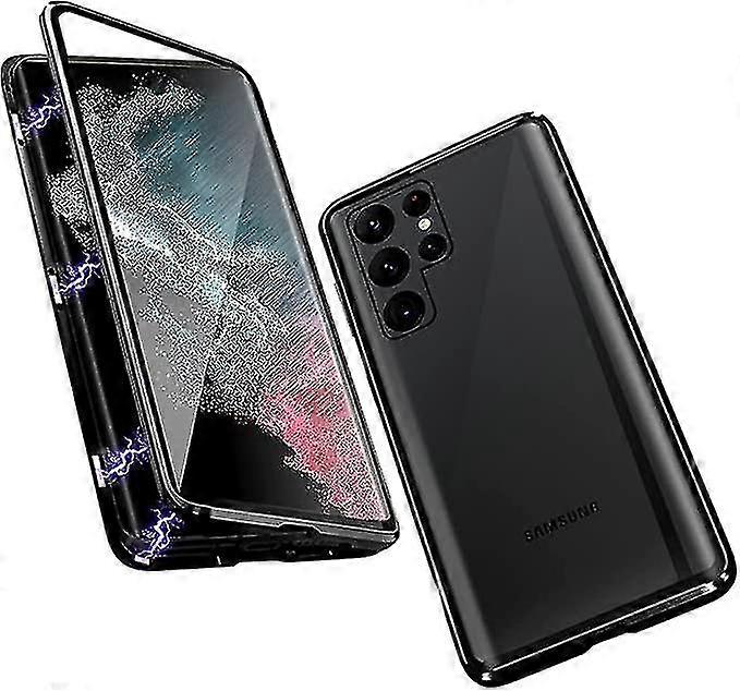 S23/s23 +/s23 Ultra Magnetic Case, Double Sided Case Magnet Adsorption Metal Frame Tempered Glass Protective Cover