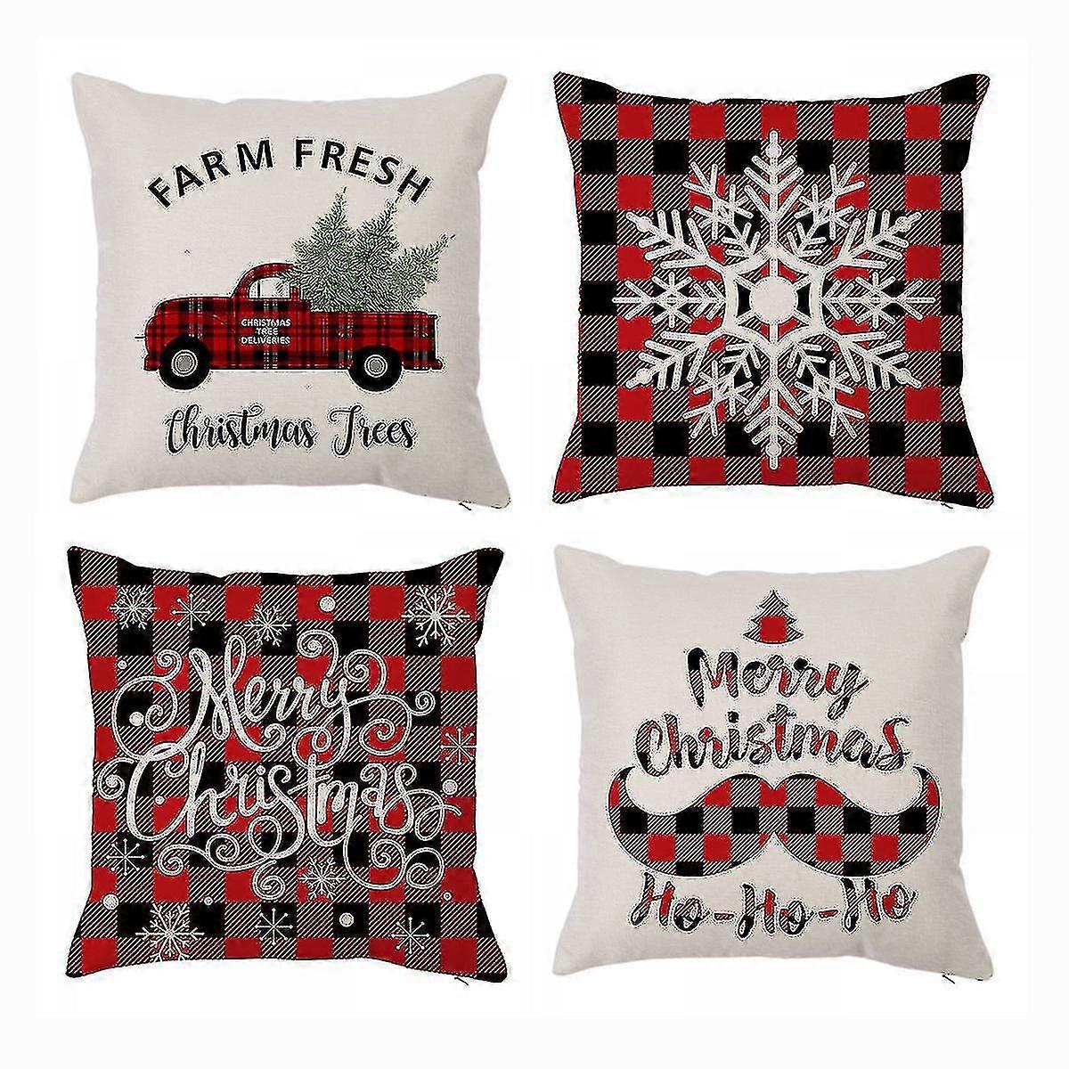 Pillow Covers 18 X Inches Set Of 4 - Xmas Series Cushion Case Custom Zippered Square Pillowcase(h)