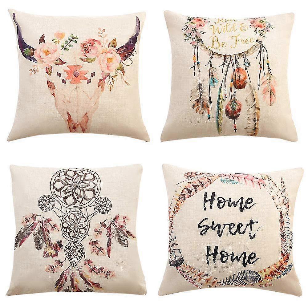 Bohemian Dream Catcher Pillow Covers 18x18 Inch, 4-Pack Cotton Linen