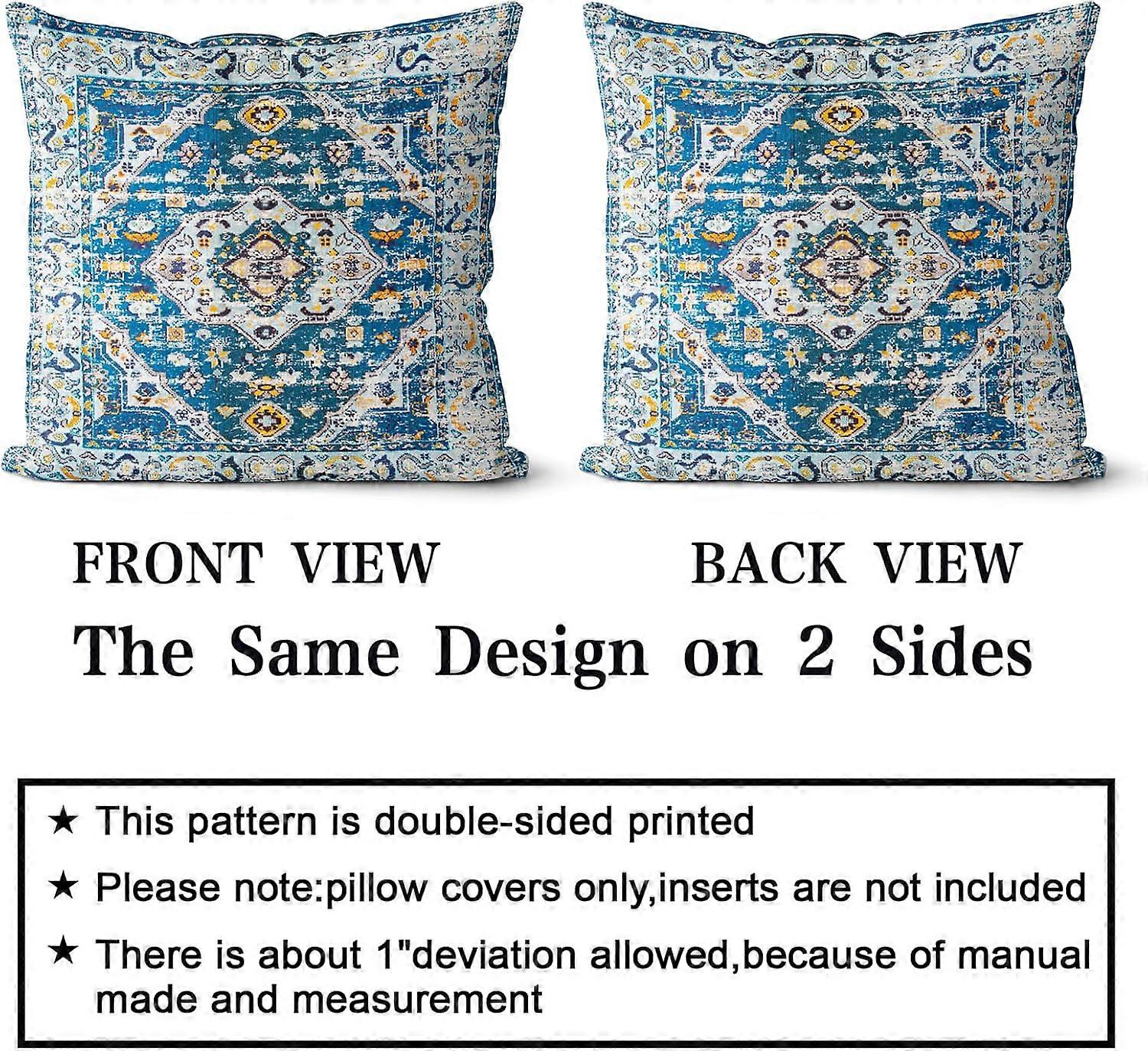 Boho Blue Throw Pillow Covers 16x16 inch Set of 2 Monaco Rug Persian Carpet Double Sided Pattern Cotton Soft Pillow Case Cushion Cover Pillowcase for