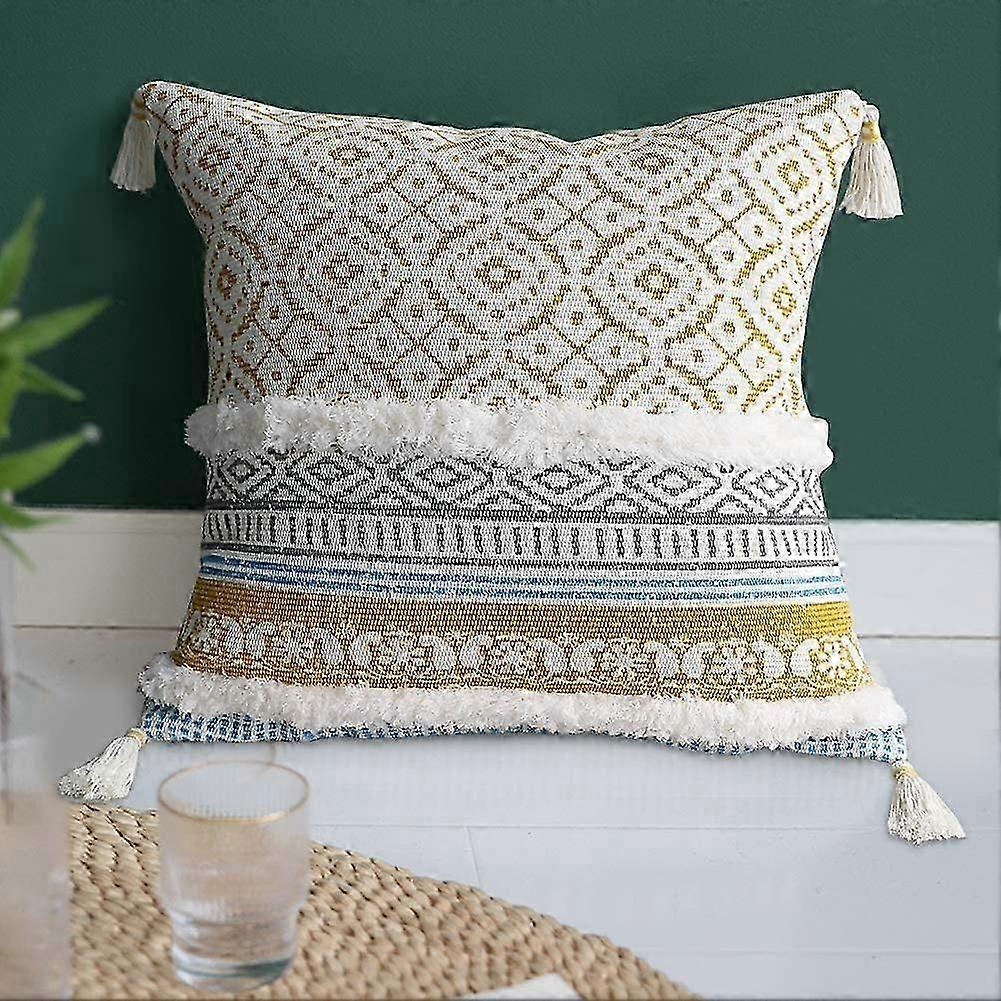 2025 Morocco Tufted Boho Pillow Covers - Square Throw Pillow Cases Woven Pillowcase Soft Cushion Cover for Sofa Couch Bedroom Car Living Room with Inv