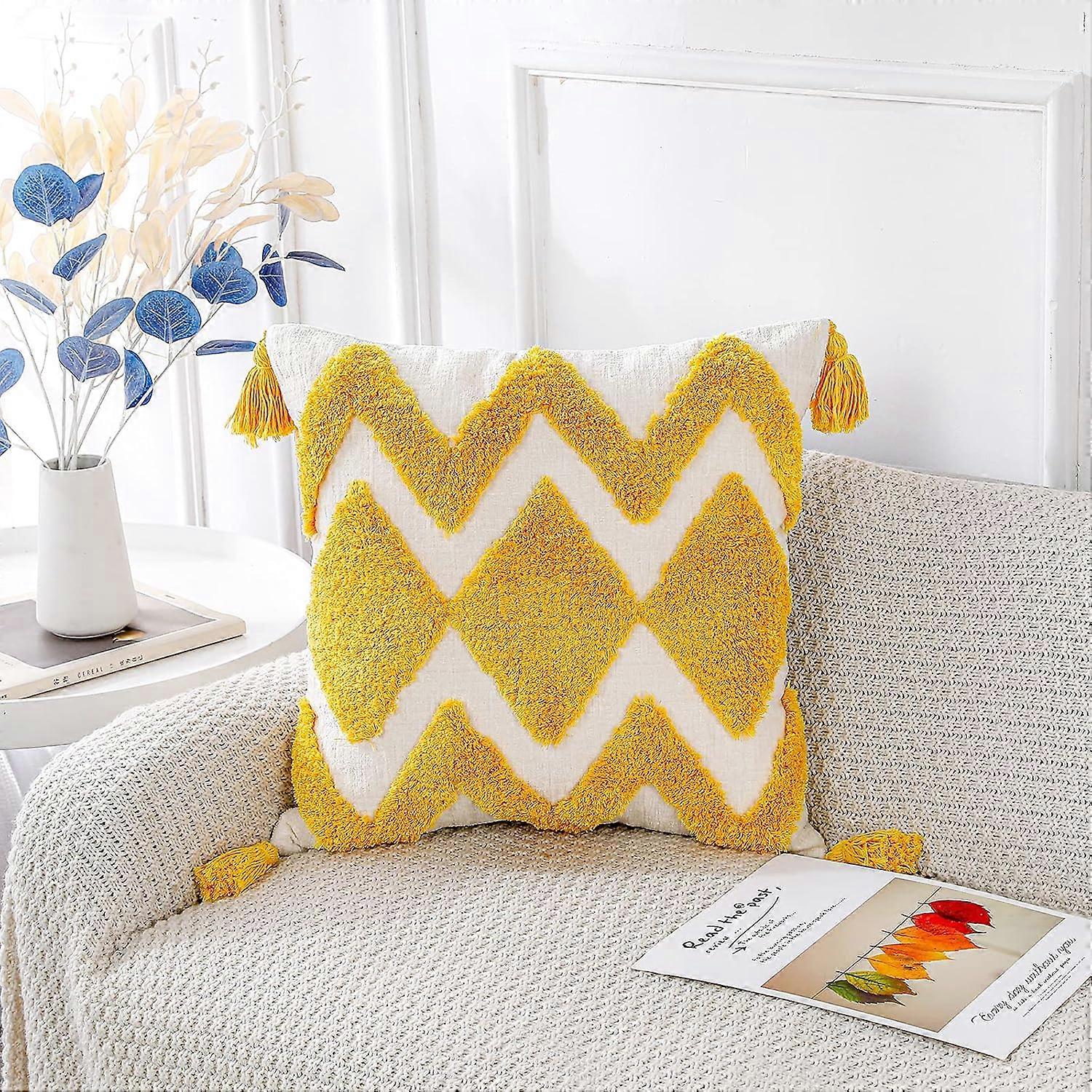 Boho Tufted Throw Pillow Covers with Tassel Soft Cream Chenille Decorative Square Cushion Case Pillowcase for Couch Sofa Bedroom Living Room Farmhous