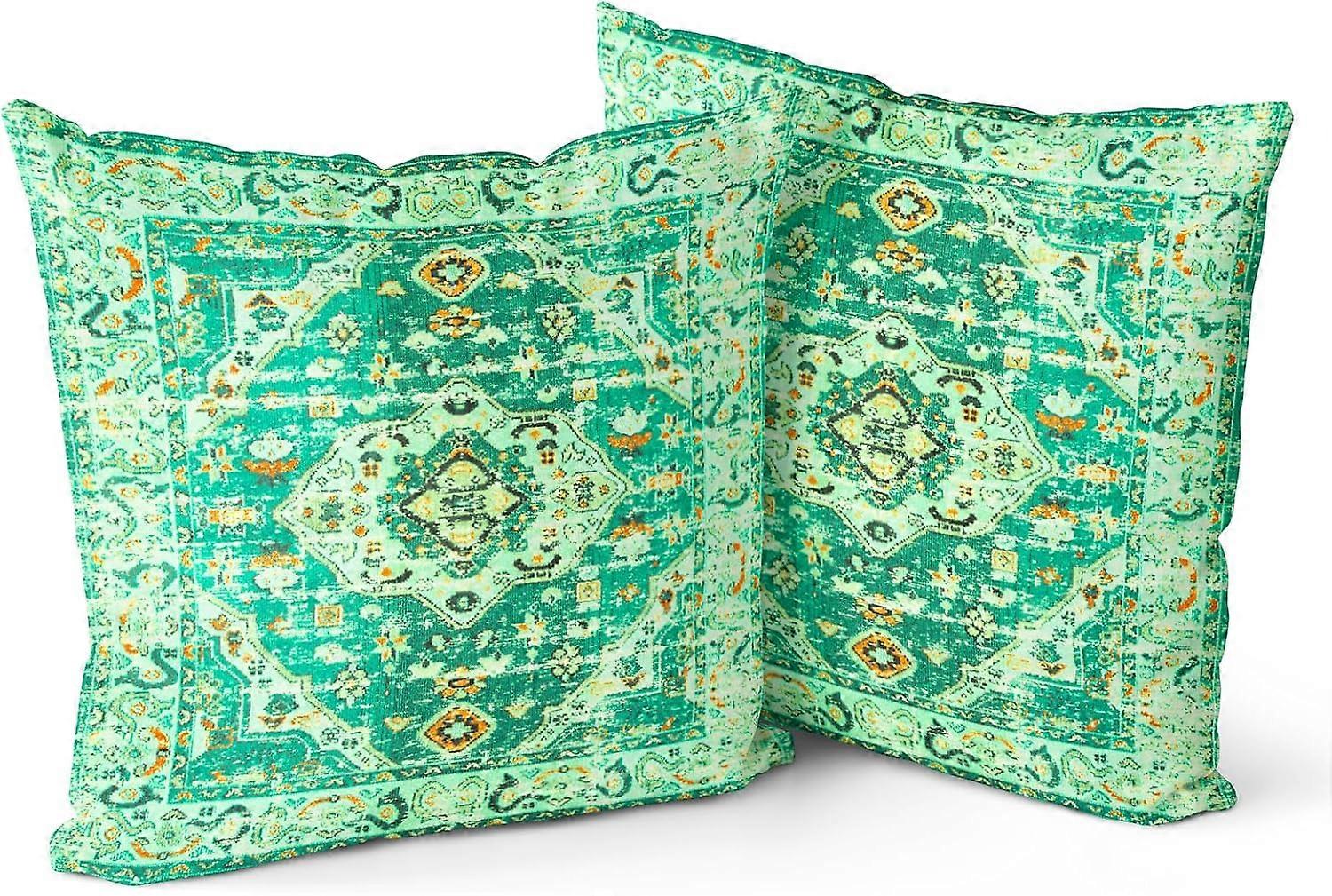 Boho Green Throw Pillow Covers 16x16 inch Set of 2 Monaco Rug Persian Carpet Double Sided Pattern Cotton Soft Pillow Case Cushion Cover Pillowcase for