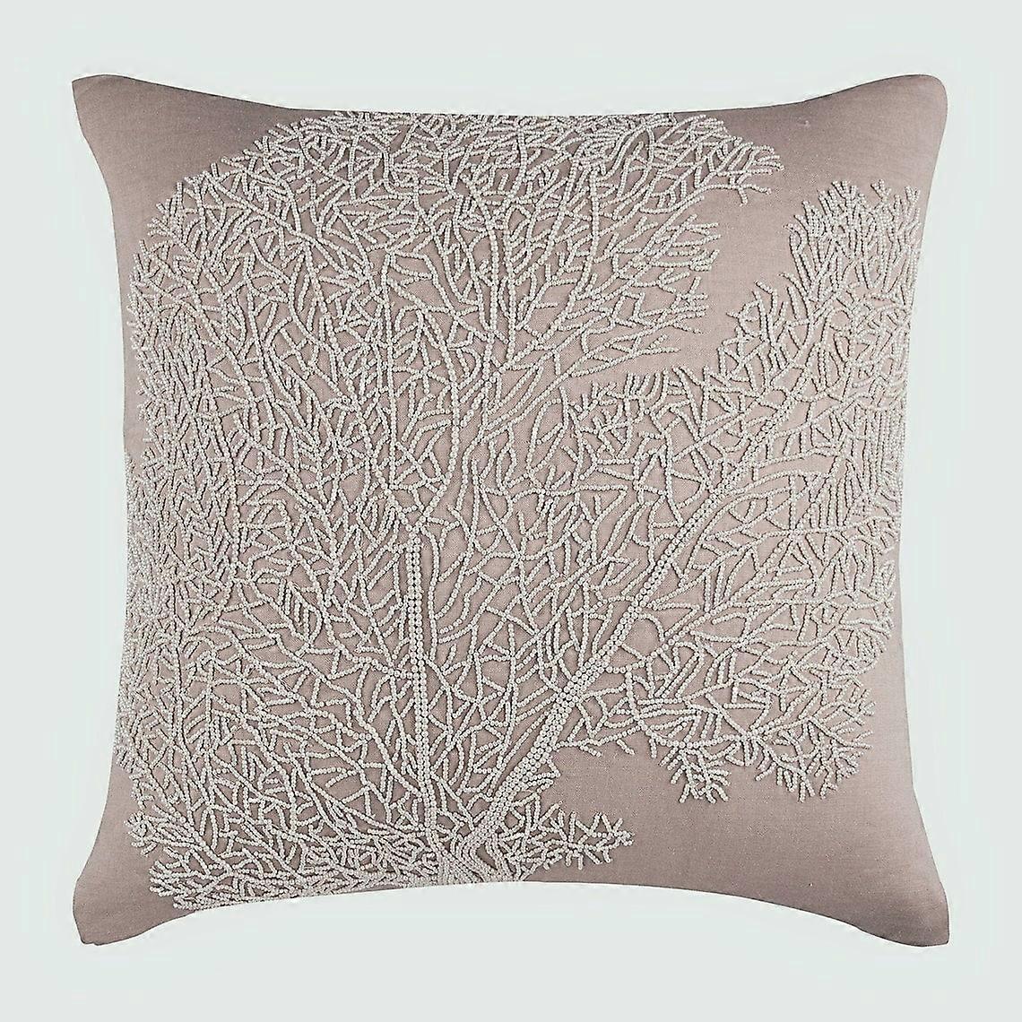 Pillow Covers with Zippers, 16x16 inch Mocha Linen Designer Pillowcases, Sea Creatures & Corals, Beach Theme - Pearl Shrub