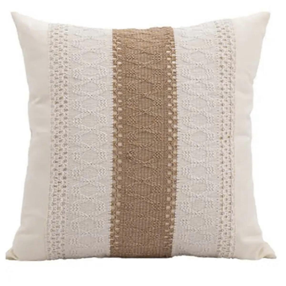 made of premium cotton and linen, no insert ELEGANT DESIGN: These throw pillow covers feature a classic geometric pattern, bringing a layer of sophistication to your space. The throw pillow covers presents itself as a great fit for fall, your living room. HIDDEN ZIPPER: This cushion cover has a long zipper, it improves the appearance and provides easy insertion and removal. EASY CARE: Hand wash recommended due to tassels. Machine wash separately in cold water, gentle cycle, do not bleach, flat dry. 45X45cm(18x18inch) Cotton & Burlap Throw Pillow Covers Boho Farmhouse Textured Striped Woven Cushion Covers For Autumn Winter Color: As Shown Material: Cotton And Linen Package Contents: 1 * pillow covers Only the above package content, other products are not included. Note: Light reflection and different displays may cause the color of the item in the picture a little different from the real thing. The measurement allowed error is +/- 1-3cm.