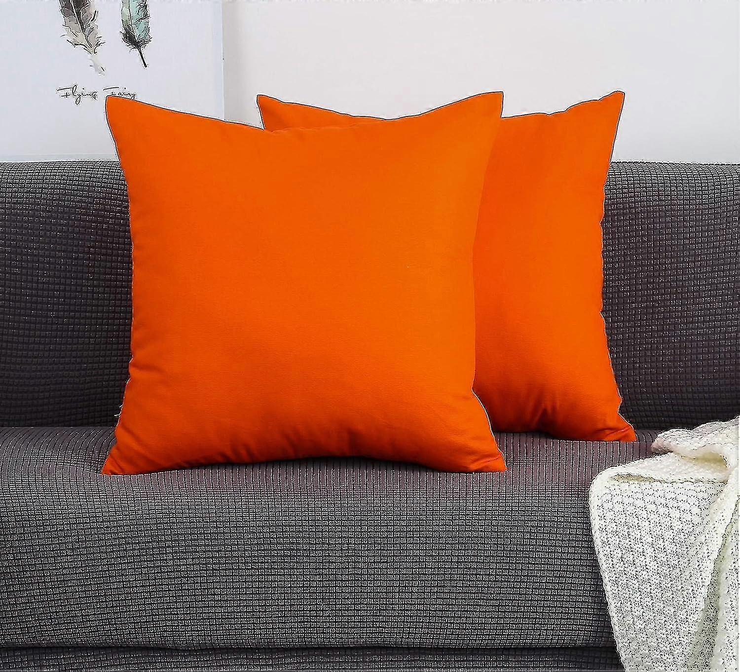 Cotton Solid Throw Pillow Covers, 18" X 18" , Orange