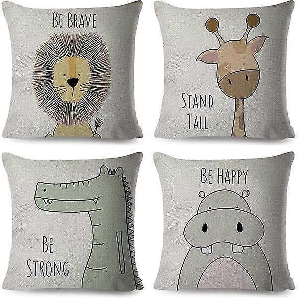 Cartoon Animal Pillow Covers Kids Pillowcase Set of 4 Throw Pill
