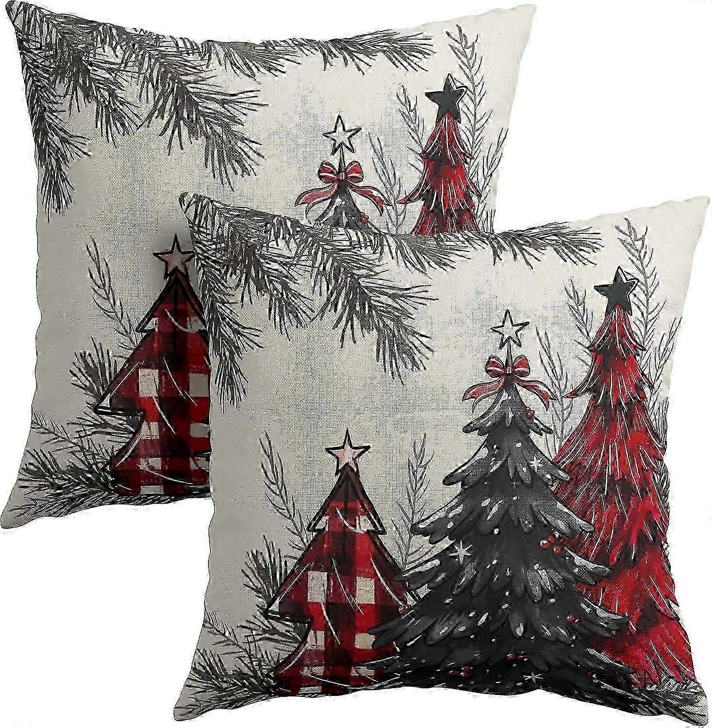 Christmas Tree Pillow Covers 16x16 Inches Red Balck Xmas Tree Throw Pillow Case Set of 2 Christmas Decorative Pillow Cover Cotton Linen Cushion Cover