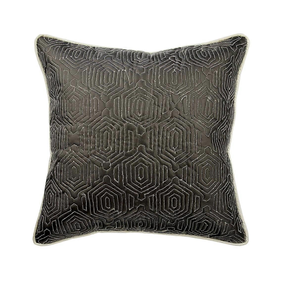 Grey 12x12 inch Faux Leather & Suede Pillow Covers with Zip, Geometric Pattern & Quilted Design - Transfixed