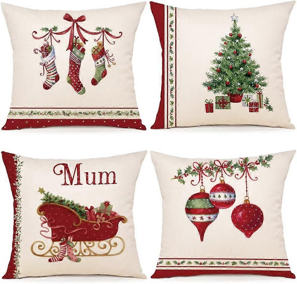 Christmas Cushion Covers - Set of 4 in Cotton and Linen 40x40 cm for Bedroom and Living Room