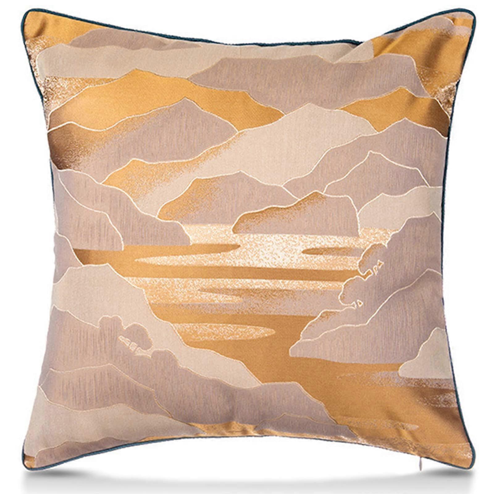 Chinese Geometric Striped Patchwork Pillow Cushion Covers 18x18 Inches for Sofa Chair Bed Decoration in Gold Color