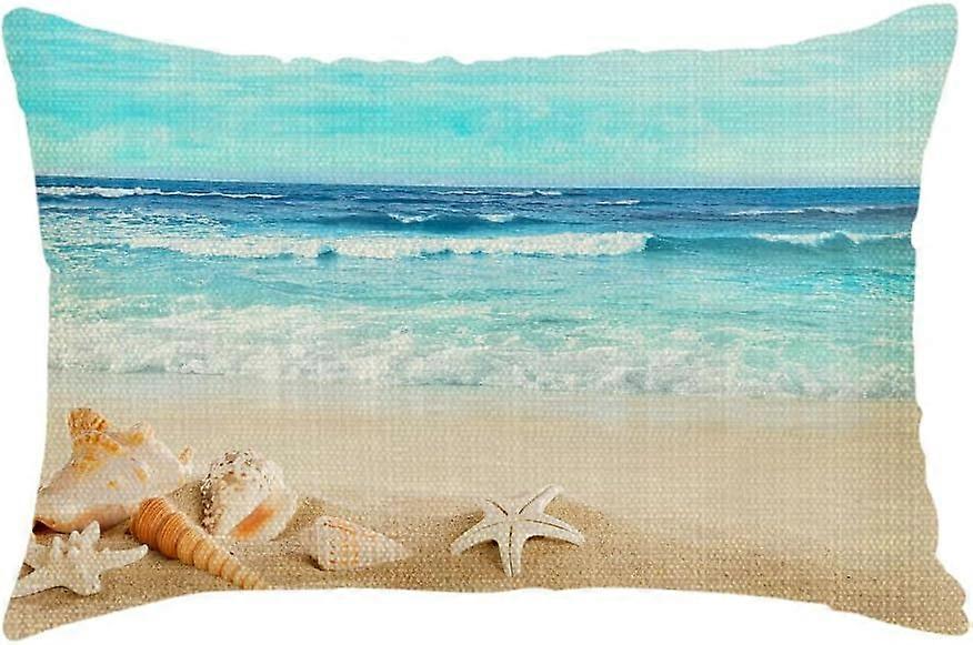 Throw Pillow Covers Beach with Shells Starfish Sand Ocean Pillow Cases Cotton Linen Waist Lumbar Cushion Cover Sofa Home Decorative Rectangle 12x20 In