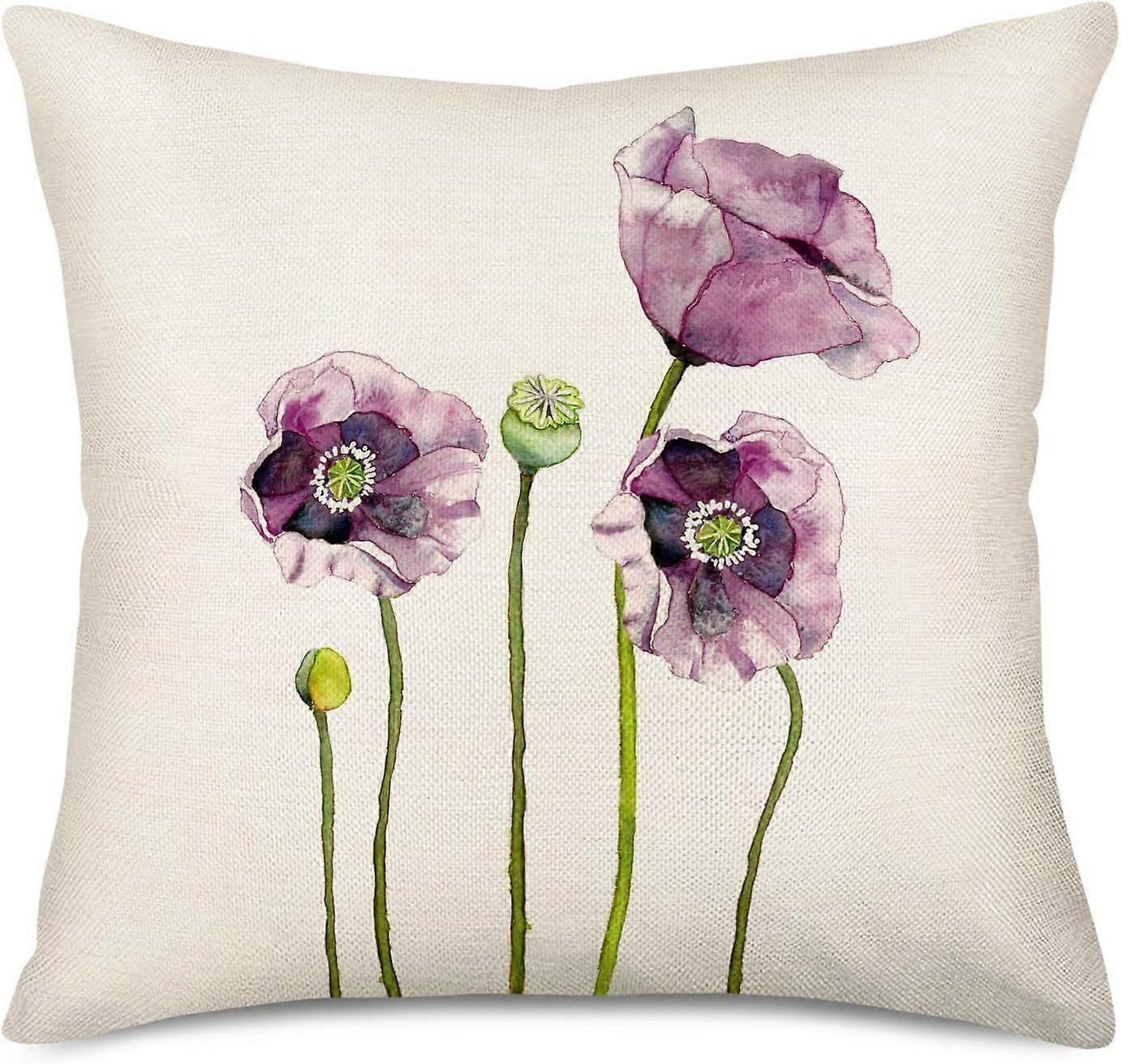 Throw Pillow Covers Purple Poppy Flower Cotton Linen Decorative Throw Pillow Case Cushion