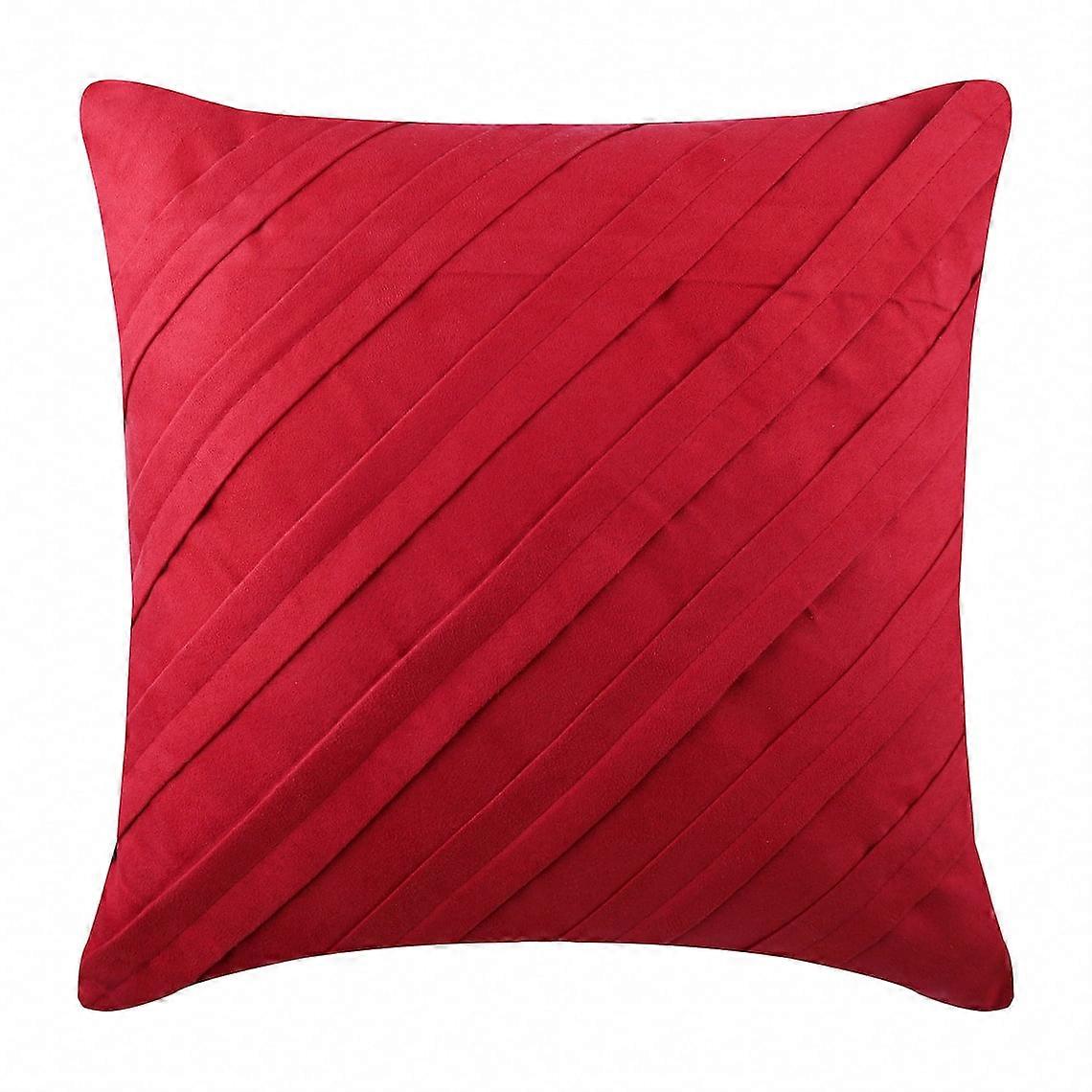 Red Decorative Pillow Covers 16x16 inch, Suede, Solid Color, Pintucks, Textured, Striped, Zippered Toss Pillows - Contemporary Design