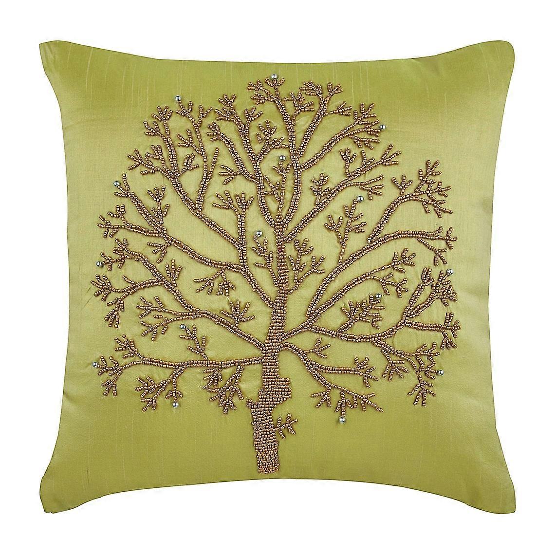 Cushion Covers for Couch, Decorative Compatible with Apple Green Pillow Covers 16x16 inch, Silk Throw Pillows, Floral & Beaded Tree Design
