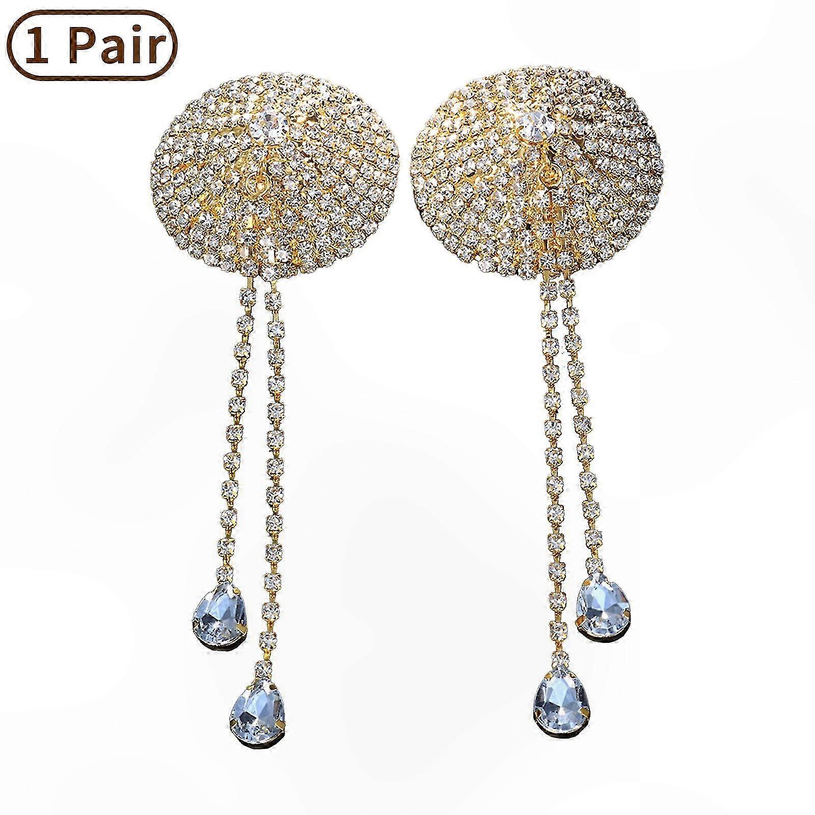1 Pair Tassel Round Chest Breast Nipple Stickers Rhinestone Stickers Pasties Nipple Covers Body Jewelry For Women Chain Edge Tassel Breast Bra Nipple Cover Reusable Self-Adhesive Bra Nipple Pasties Set Includes: 1 Pair Nipple Covers Condition: New Without Tag Material: 50% Copper, 50% Rhinestone Features: 1 pair women's round-shaped shiny rhinestone nipple covers, reusable self-adhesive nipple stickers with pendant. Made of high-quality and safe material, breathable and comfortable, won't leave imprints on skin. Reusable adhesive holds well; after use, clean with mild neutral soapy water. Round design adorned with shiny rhinestones and tassel pendant for decorative appeal. Suitable for special ocns, body decoration, evening events, or intimate moments. Type 1 Size: Diameter: 6cm / 2.4 inch Pendant Length: 10cm / 4 inch Type 2 One Size Friendly Tips: Size is measured manually, please allow slight measurement deviation. Photo color may vary slightly from the actual product due to monitor display differences.