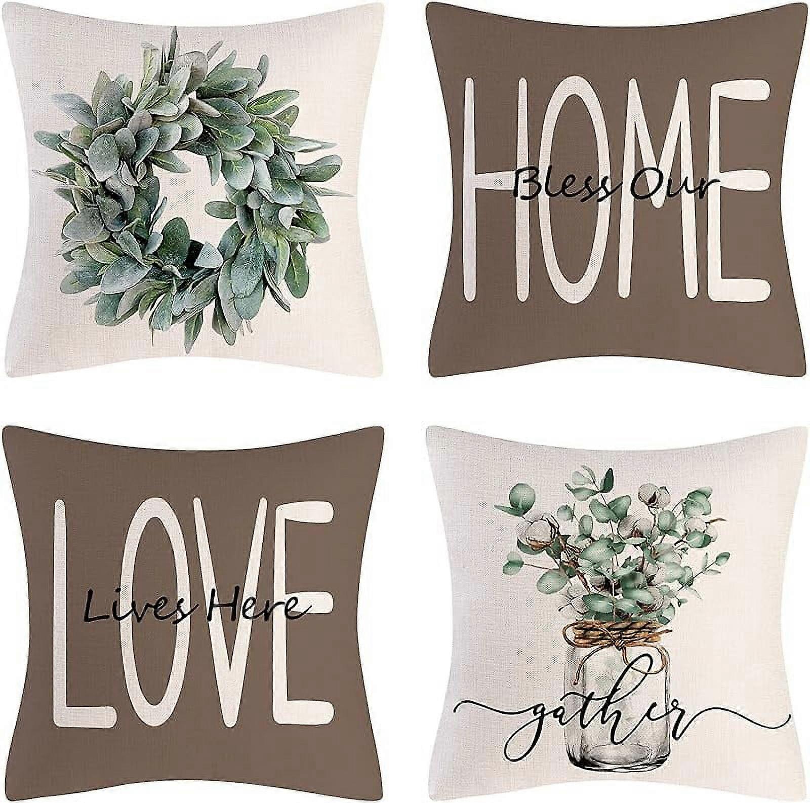 Throw Pillow Covers 18x18, Set of 4, Farmhouse Green, Compatible with 18" Inserts, Decorative Cushion Cases for Sofa, Couch, Living Room, Outdoor,
