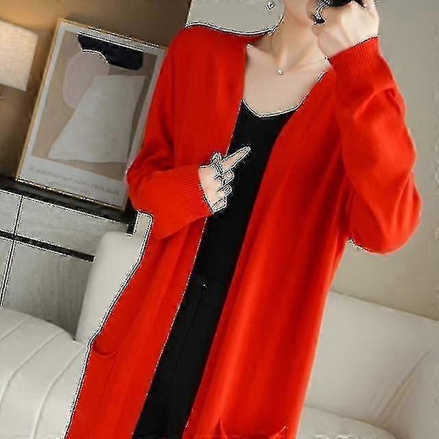 Autumn & Winter Casual V-neck Cashmere Cardigan for Women - Long Knitted Sweater Coat