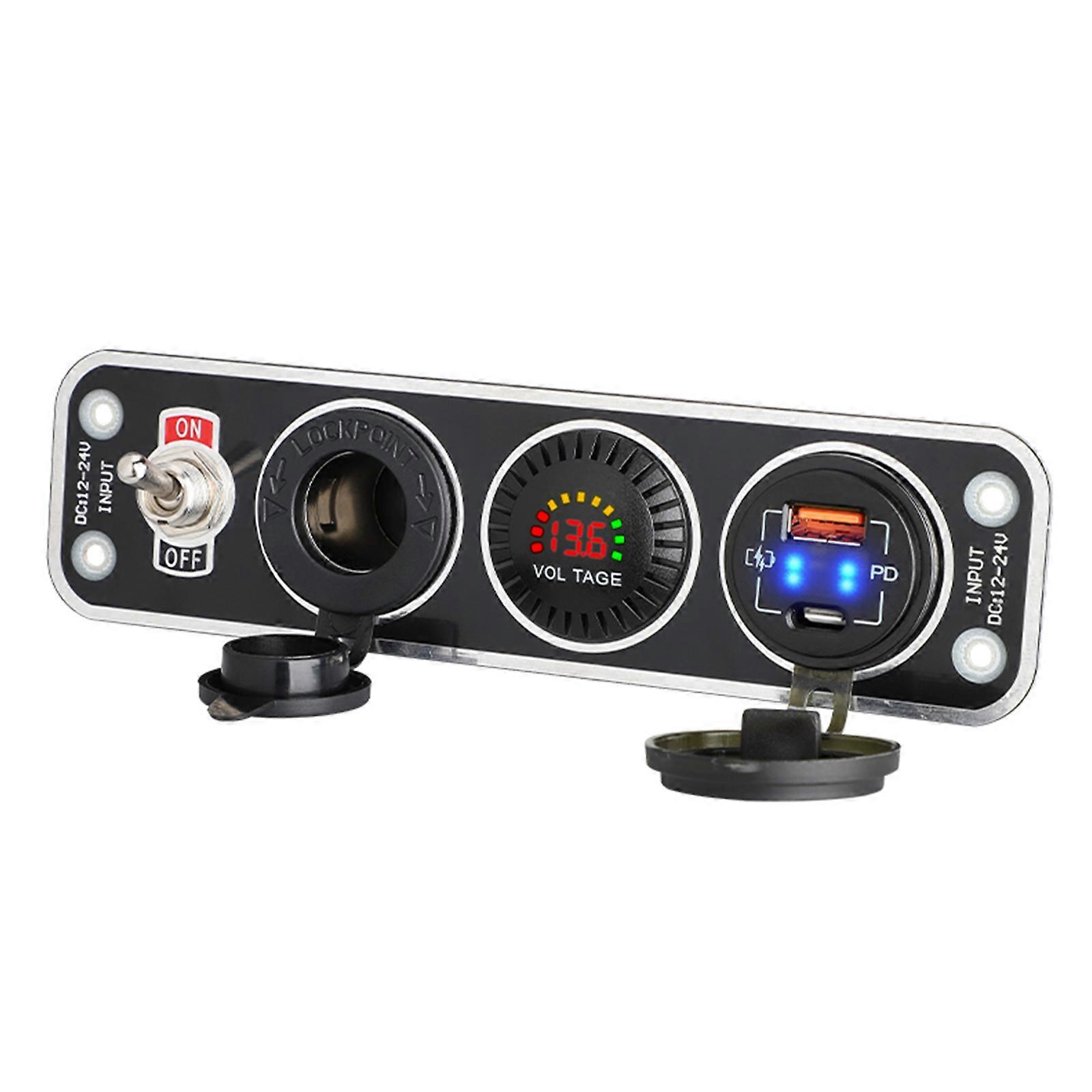 Car 12V 24V PD QC3.0 18W Power Outlet Socket USB+Type-C Charger for Truck Marine Phone Laptop with LED Voltmeter Switch Red