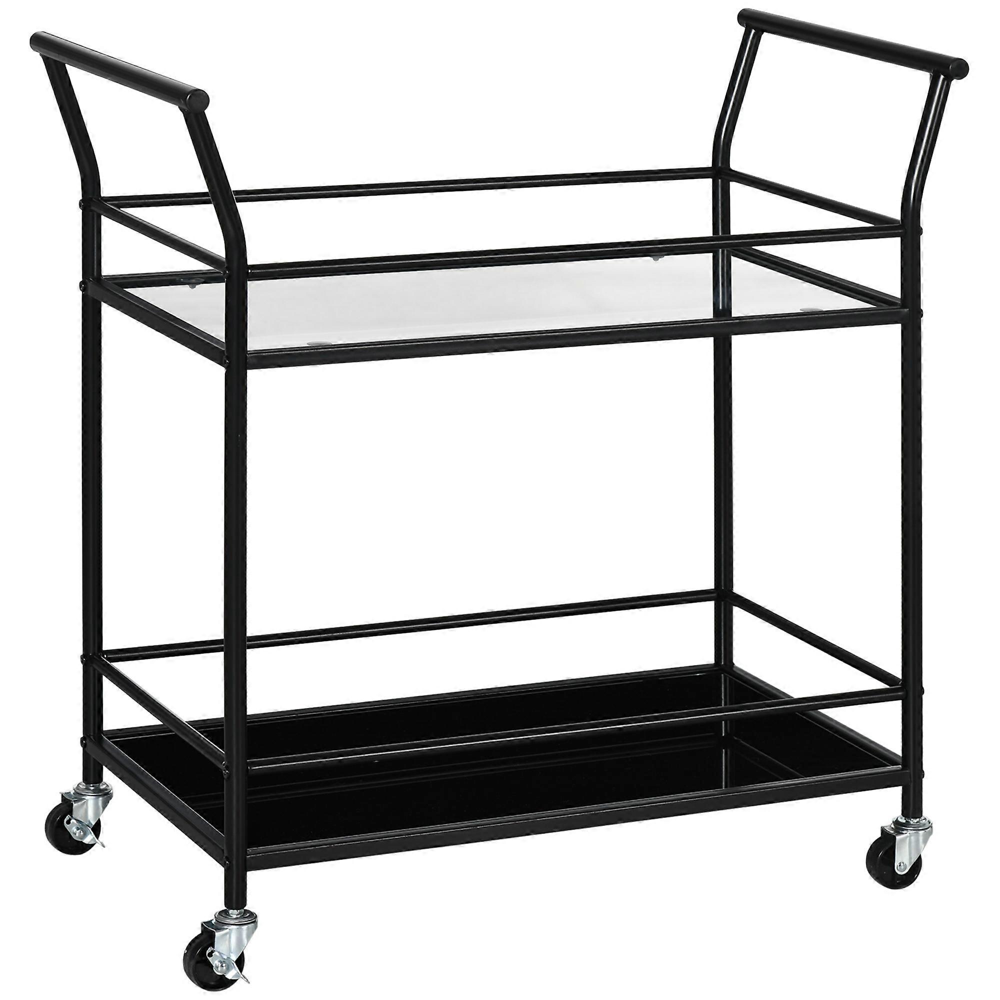 HOMCOM Kitchen Cart 2 Shelves Metal Rolling Storage Trolley Black