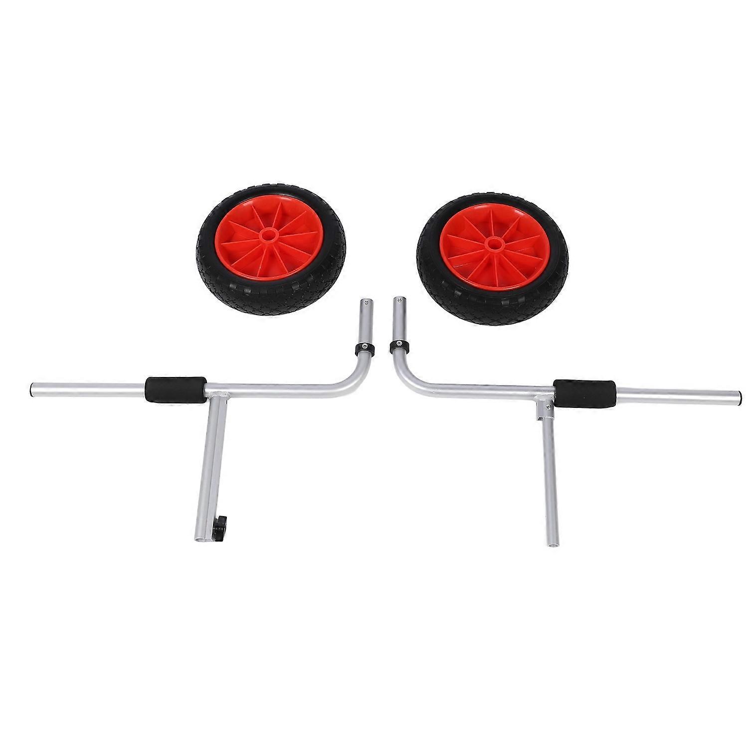Feature: 1. CONVENIENT TRANSPORTATION: The canoe carrier dolly allows for easy and efficient transportation of even the largest canoes or kayaks. It enables easy dragging over any terrain directly to the water or to any other location. 2. RUGGED CONSTRUCTION: Crafted from high grade aluminum, this carrier dolly is not only sturdy but also exceptionally secure. It comes with tightening straps to ensure your canoe or kayak safely stays in place during transit. 3. ROBUST MATERIAL: With its powder coated aluminum construction, the canoe transport dolly is built to withstand years of use. It is equipped with 10in NO FLAT airless tires which can carry heavy loads without going flat. 4. MULTIFUNCTIONAL: This kayak cart dolly is an ideal tool not only for home use but also for use at the water's edge. It significantly reduces the hassle of transporting your kayak or canoe. 5. SECURE MOUNTING: Assembled with a secure strap system, this carrier offers additional safety. It eliminates the worry of your canoe or kayak falling off the dolly during transport. Specification: Item Type: Canoe Carrier Dolly Material: ABS+Aluminum Tire Size: 2.50-4 . Package List: 1 x Frame Bracket 1 x Pair of Wheels