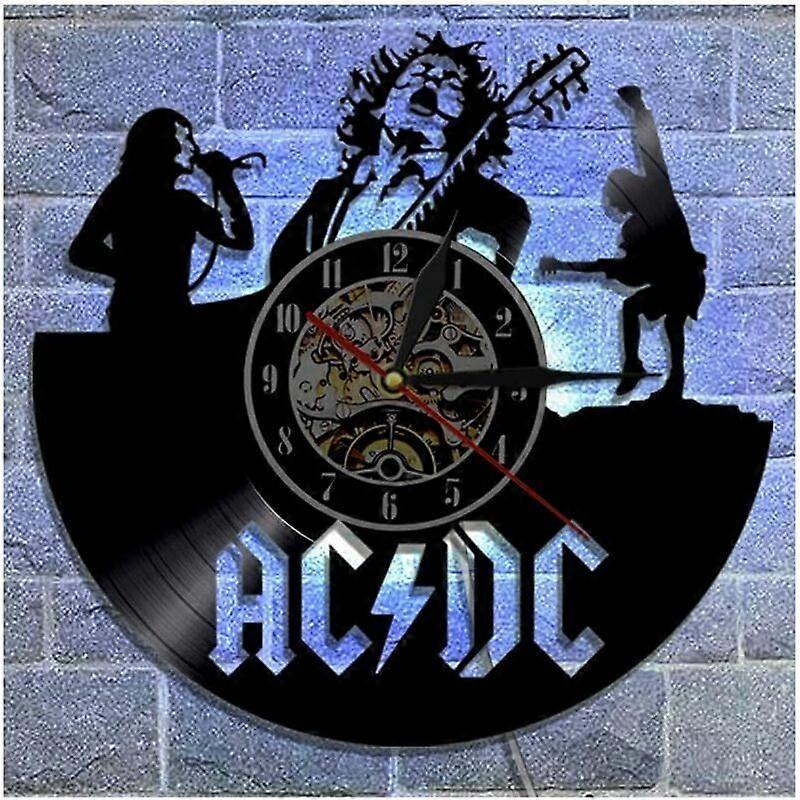 Thsinde Horloge Murale en Vinyle, 12"Design Graphiques 3D avec ACDC Rock Band LED Horloge Famille Salon Dcoration Artwork La Main 7 Couleurs avec Tlc
