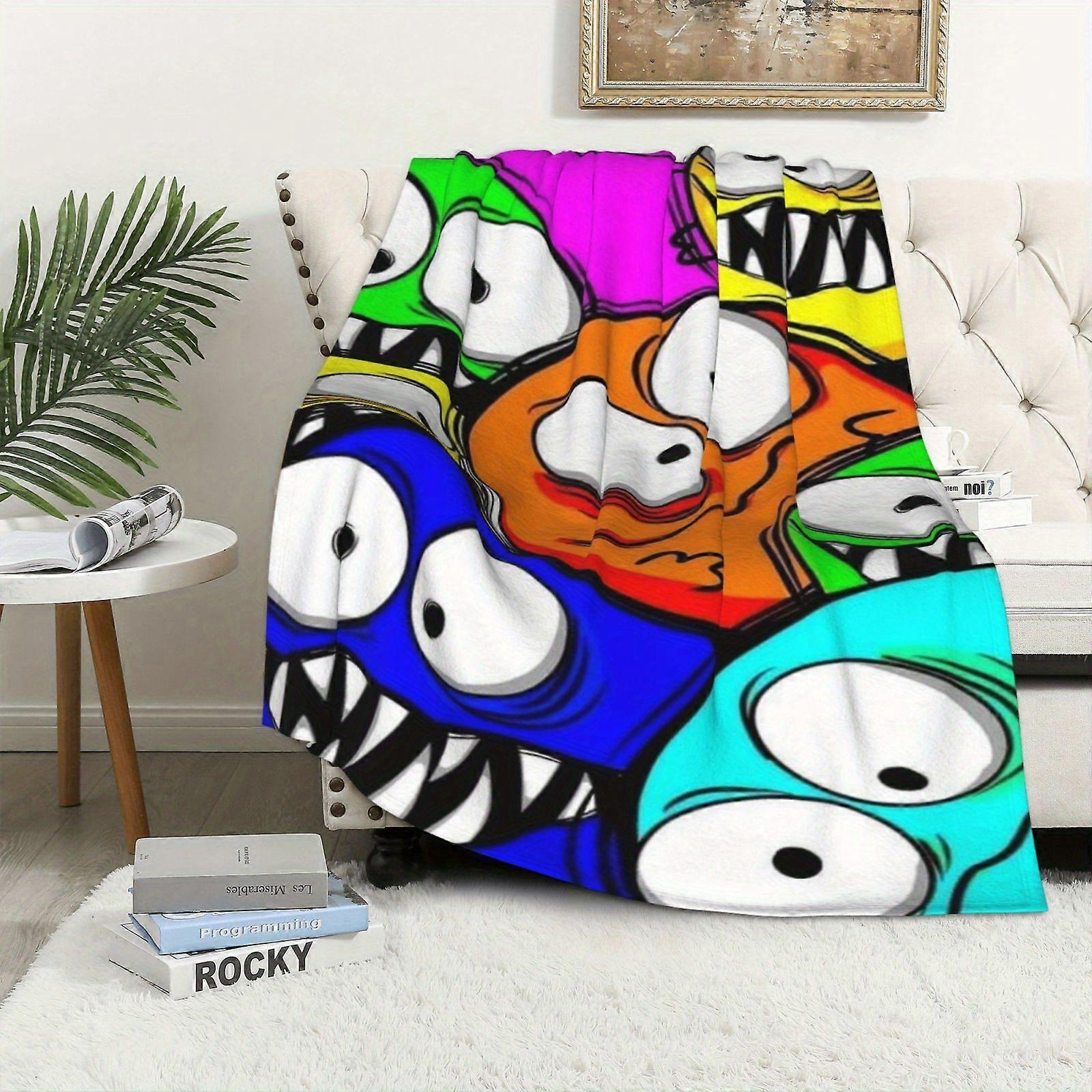 Cartoon Emoticon High-Definition Printed Flannel Blanket Soft and Comfortable Game Ending Blanket - Suitable for Sofa, B-POIAS78