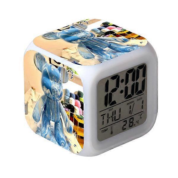 Cartoon Fluid Violent Bear Alarm Clock LED Square Clock Digital Alarm Clock with time, temperature, alarm, date