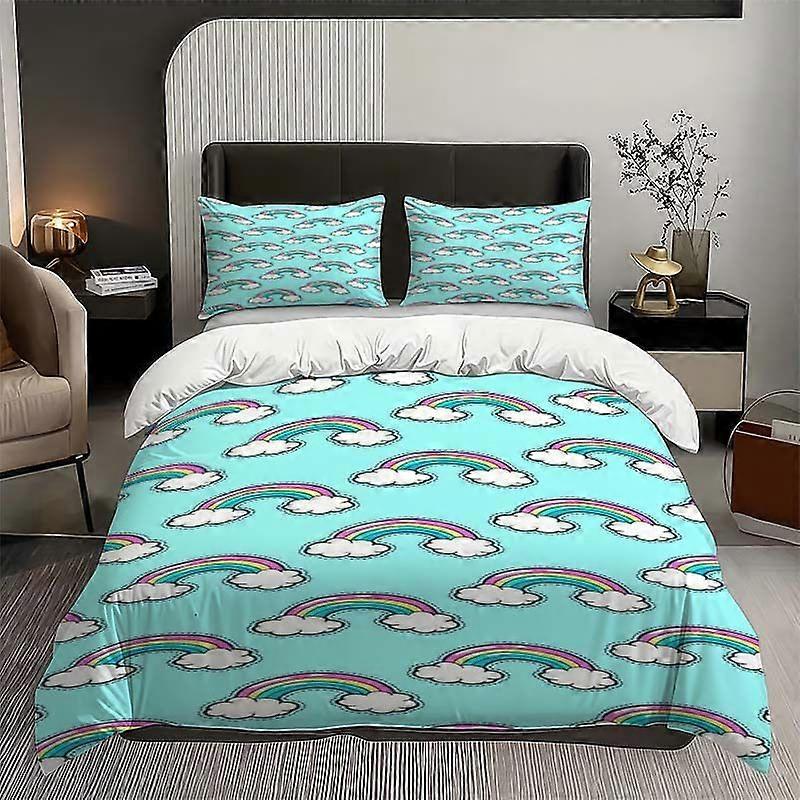 Cartoon Rainbow Background Pattern Set Soft and Comfortable Bedding Set