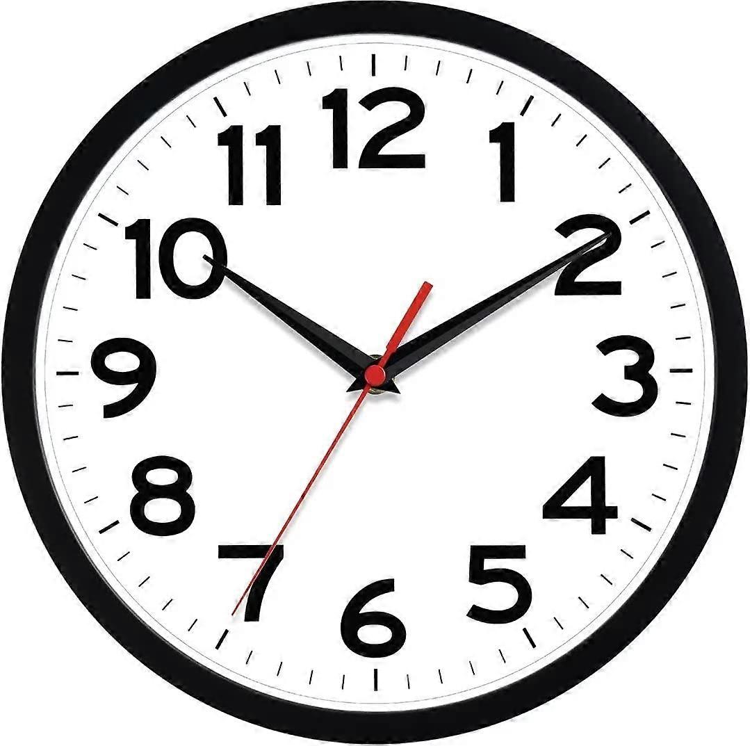 Home Round White Background Wall Clock 10 Inch Clock (Black) 1 Pieces