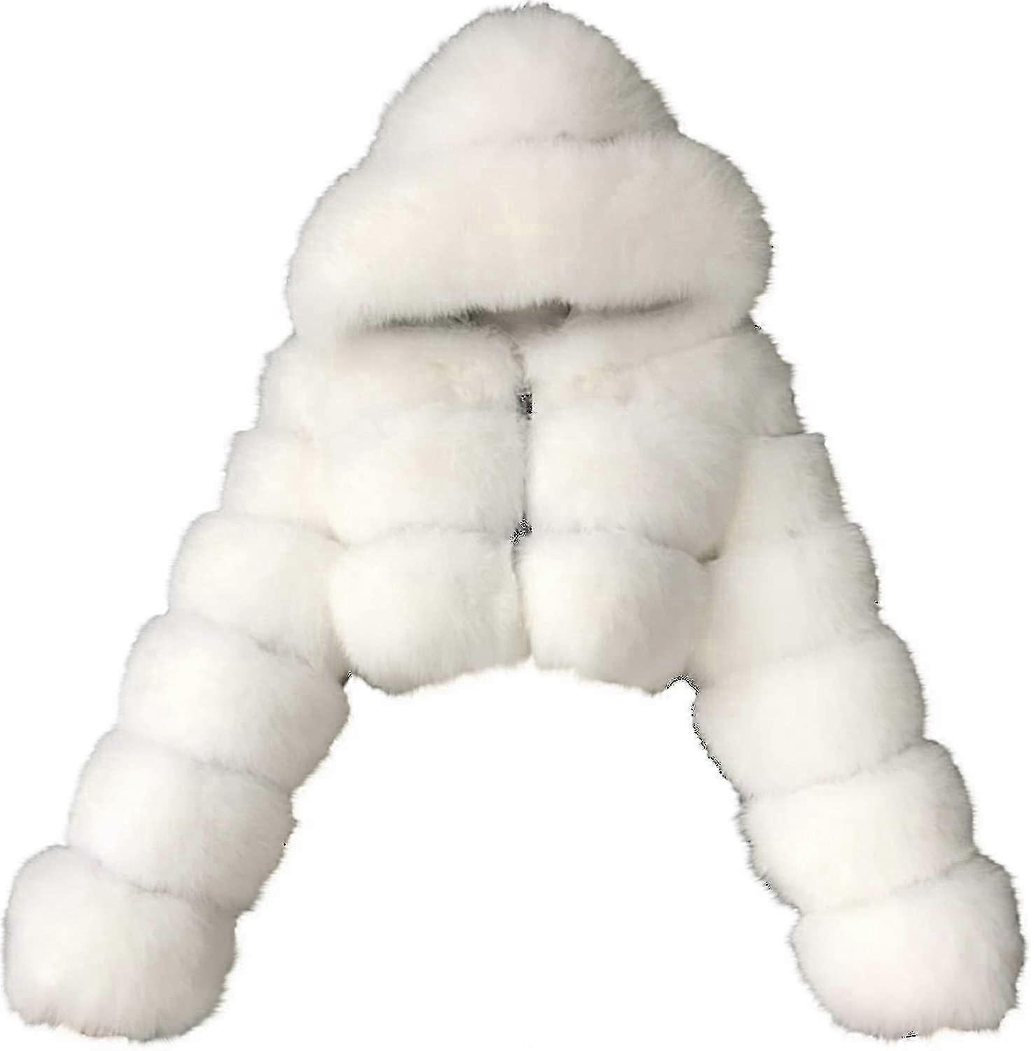 Cropped Faux Fur Coat for Women - Hooded Bubble Jacket in Plus Size Fleece