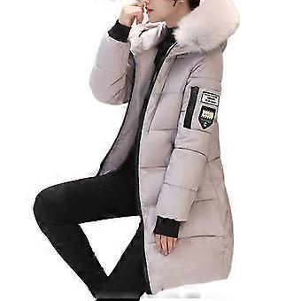 Women Winter Cotton Coat Thickened Padded Stuffed Hooded Mid Length Windproof Warm Zipper Pockets Zip Up Long Sleeve Solid Color Slim Fit Lady