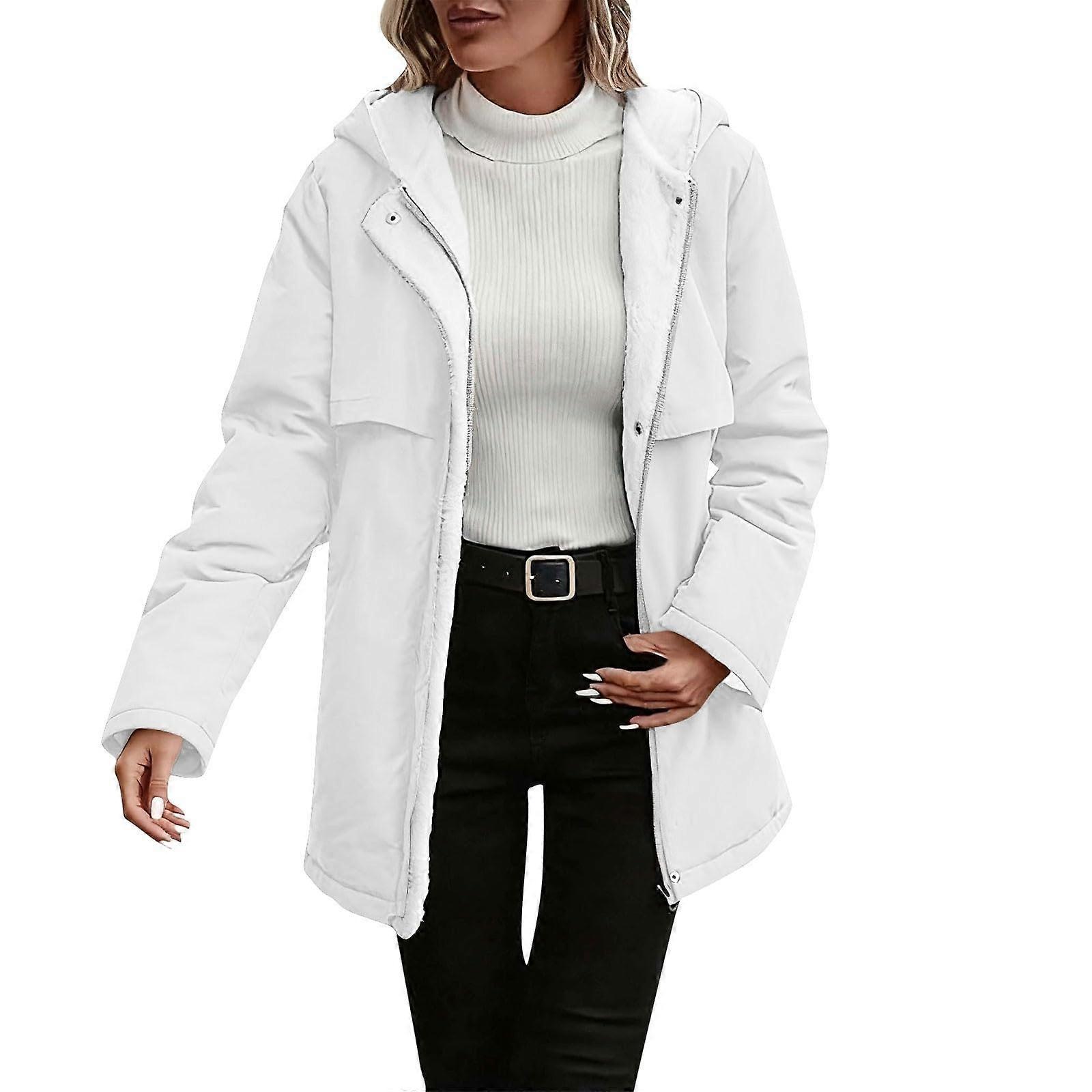 Winter Coats for Women Button Zip Up Fuzzy Fleece Hooded s Casual Fashion Thicken Warm Coats with Pockets White XL