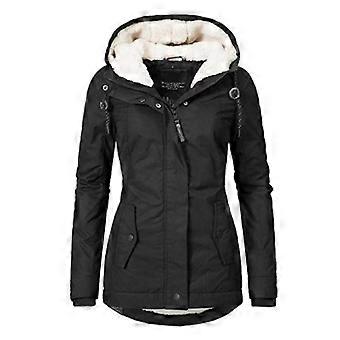 Casaco de inverno impermeável com capuz, forro de lã grossa e algodão para mulheres - yujia