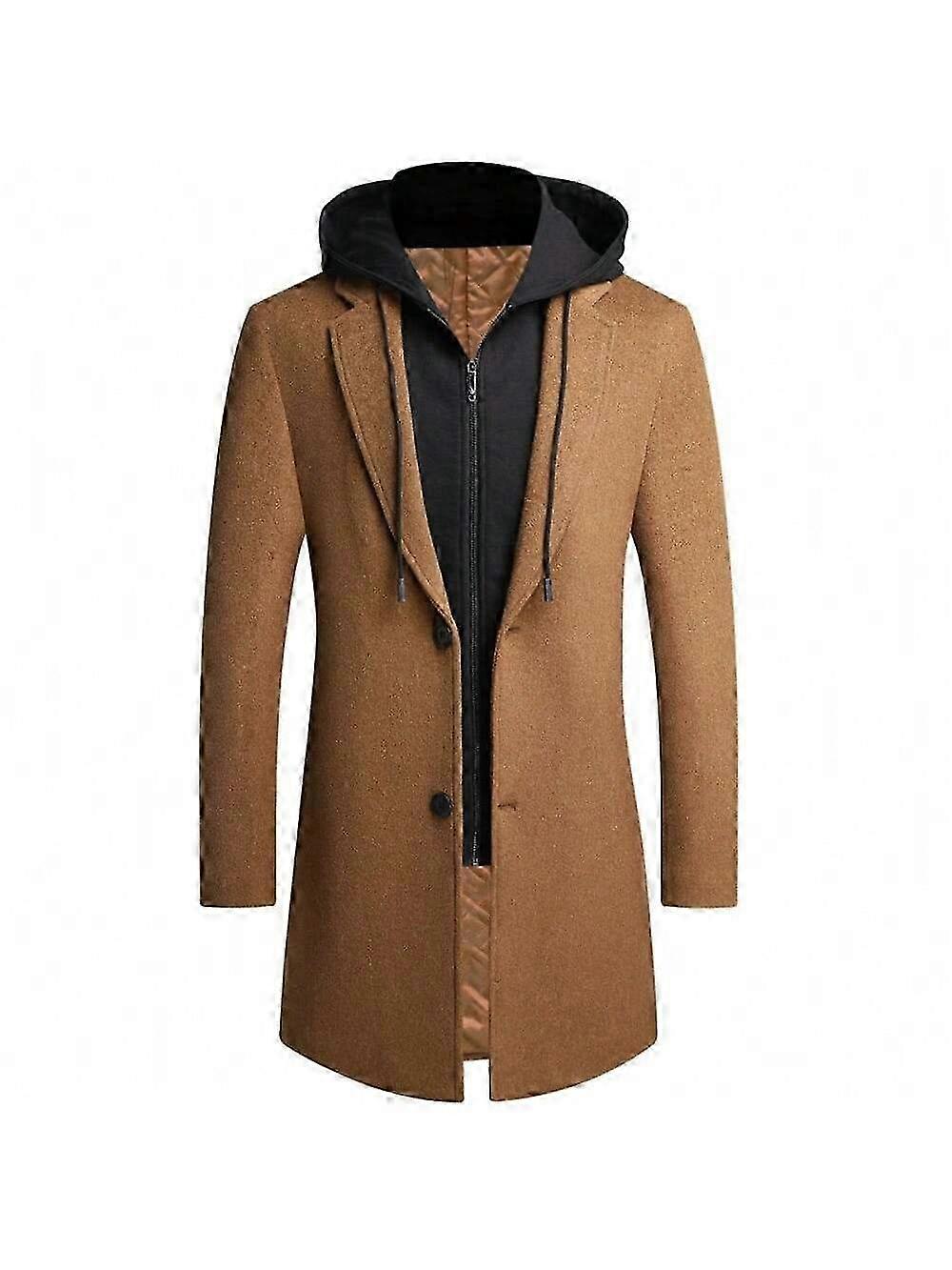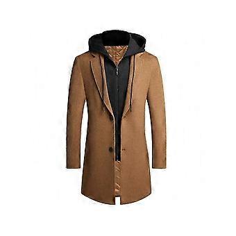 2025 Men's Korean Style Woolen Coat With Detachable Hooded Hat Casual Trendy Long Section Overcoat For Youth/Students Male