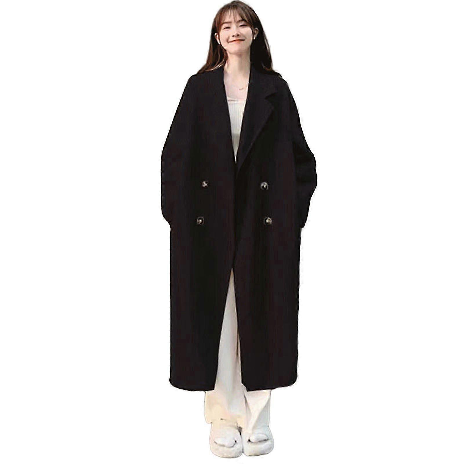 Womens Lapel Collar Faux Wool Pea Coat Winter Casual Loose Double Breasted Long Jackets Overcoat Outwear with Pockets apricot XXL