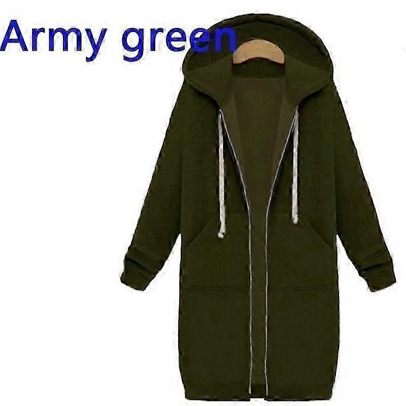 Women Hooded Long Sweatshirts Coat Casual Pockets Zipper Outerwear Jacket