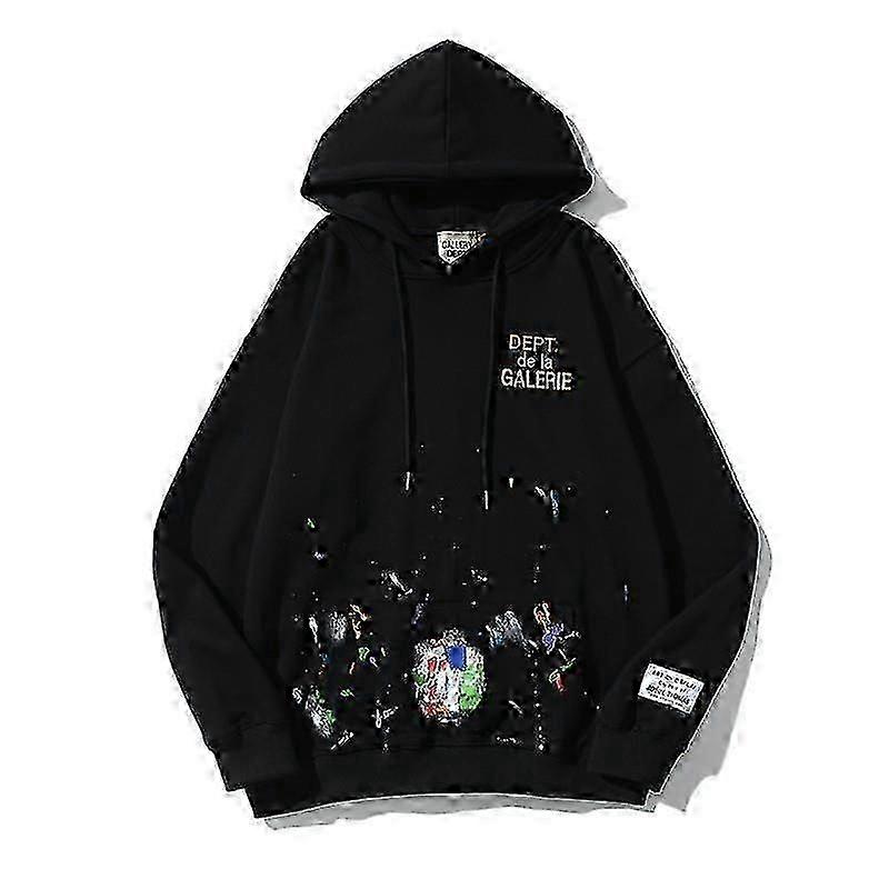 Gallery Dept Sweater Paint-Splashing Style Graffiti Gilding Letters Hoodie High Street Retro Washed Distressed Coat For Men