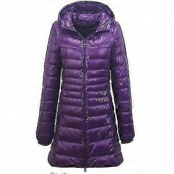 "Casaco Longo Leve e Embalável com Capuz Puffer Jacket Feminino, Roxo"